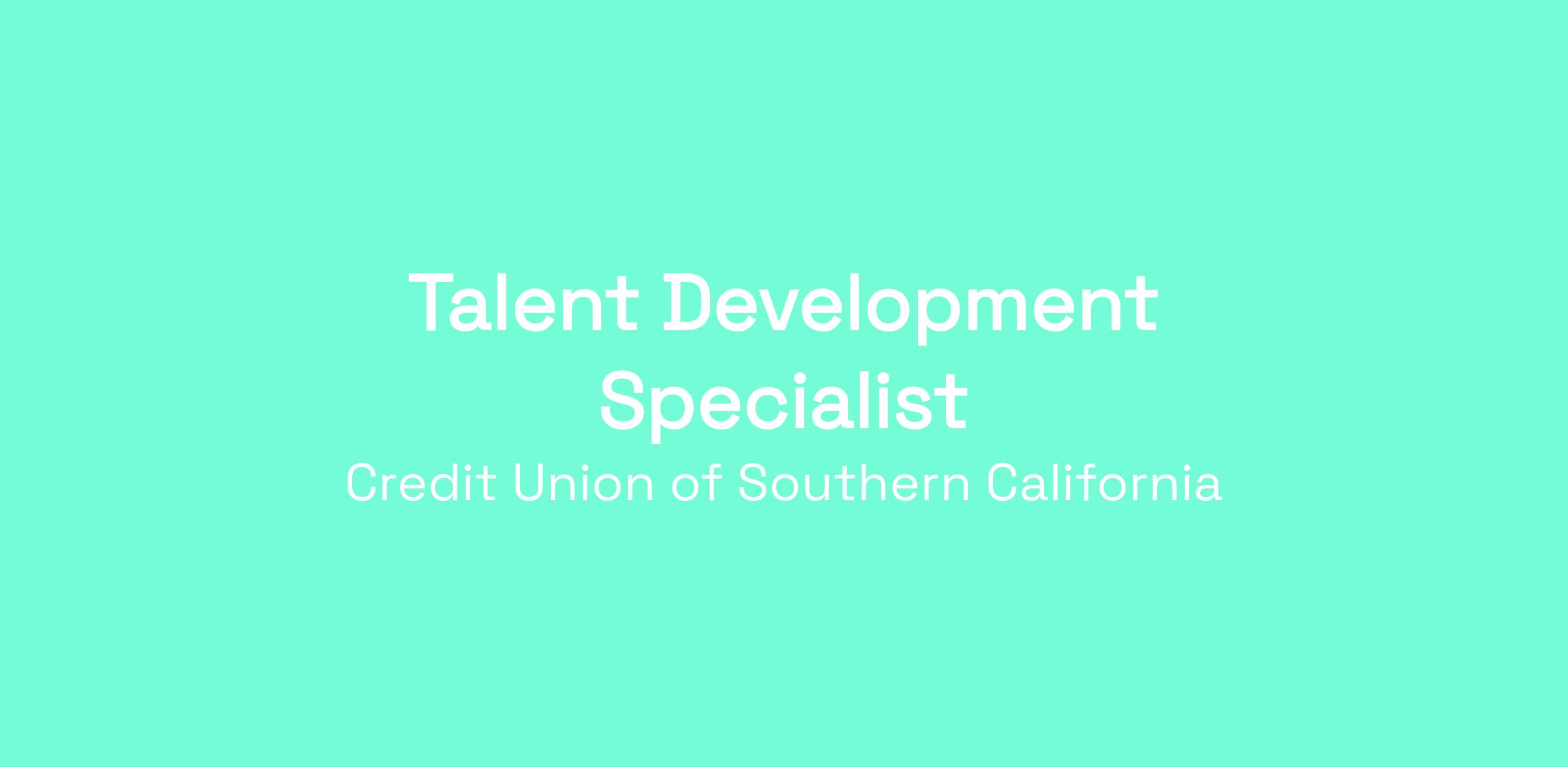 We are hiring a Talent Development Specialist who will develops, facilitate, and maintain CU SoCal’s team member training programs using a variety of effective training methods.