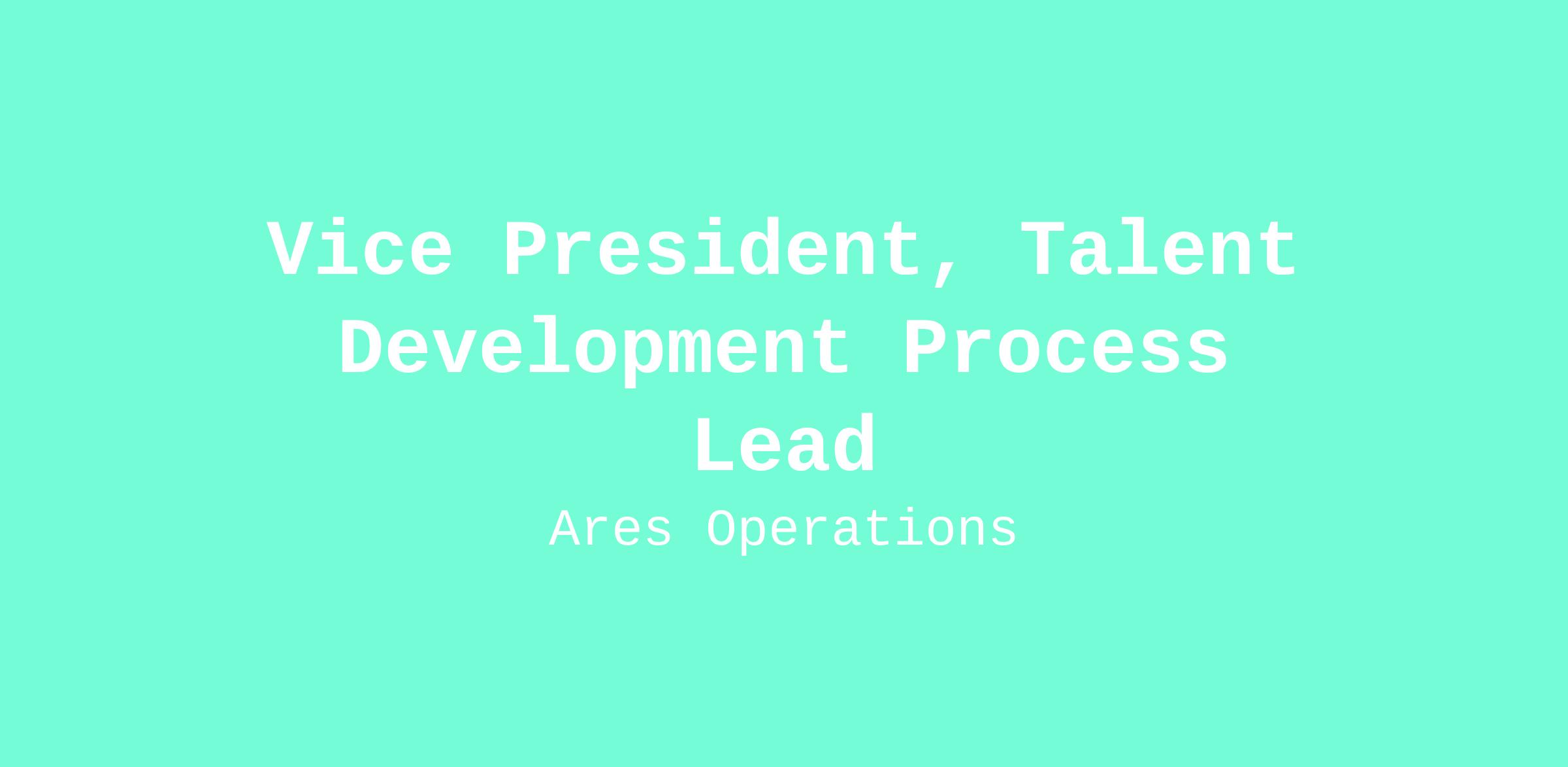 Ares Management is seeking an experienced and collaborative Vice President Enterprise Talent Development Process Lead to join our highly dynamic Human Resources team that is constantly innovating and striving to positively impact the people of Ares.