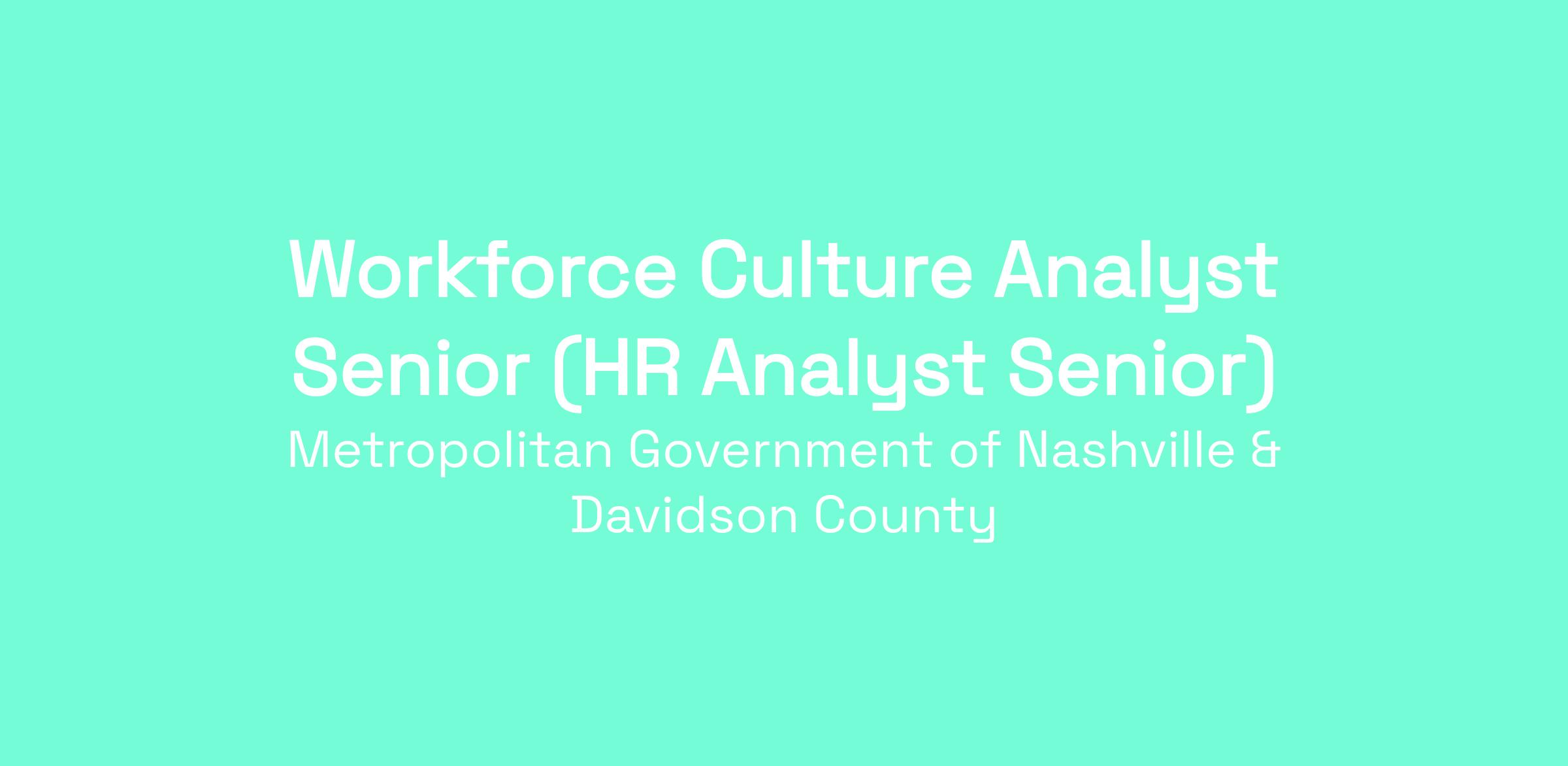 The Workforce Culture Analyst Senior is a civil service position, located with the Workforce Diversity and Culture division of the Department of Human Resources and performs complex professional, technical, and analytical workforce culture-related activities. The senior-level Workforce Culture Analyst will perform workforce culture-related recruitment, retention, training, and data work to ensure Metro work cultures are functioning with fairness, representation, and positive impact to the diverse constituents we serve.