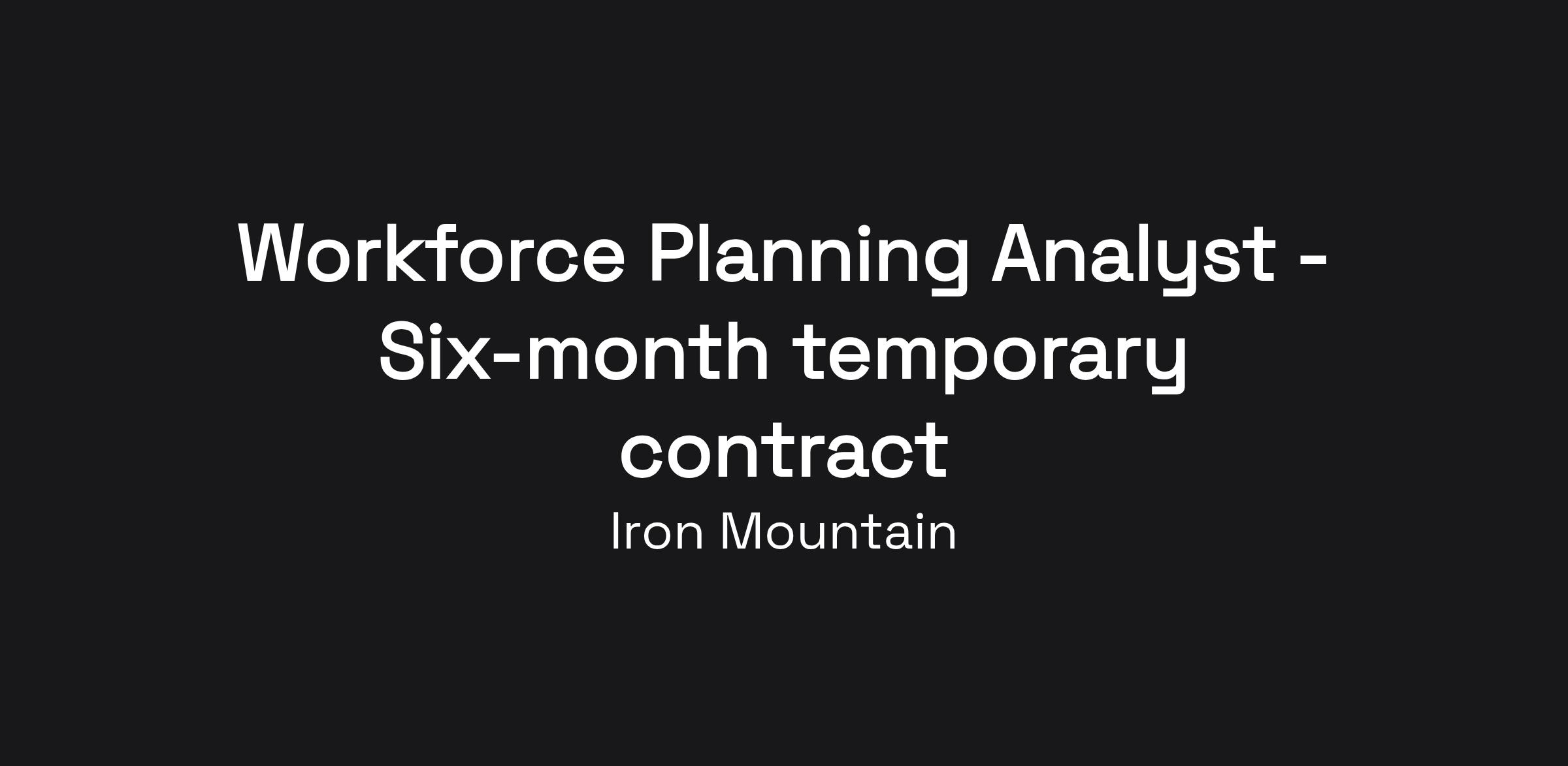 This six-month temporary contract role is a member of the Global Organizational Effectiveness team, which is part of the HR function at Iron Mountain. The team is responsible for providing expertise and support in three areas: Strategic Workforce Planning, Organization Design and HR Data & Analytics. The impact of the OE team is to partner with our business leaders and HRBPs to: